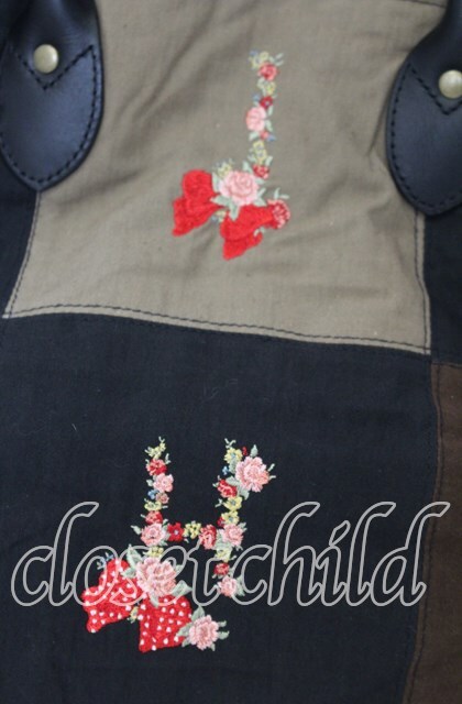 PINK HOUSE / いちご刺繍パッチワークバッグ クロ系 O-25-10-10-006-LO-BG-IG-OS