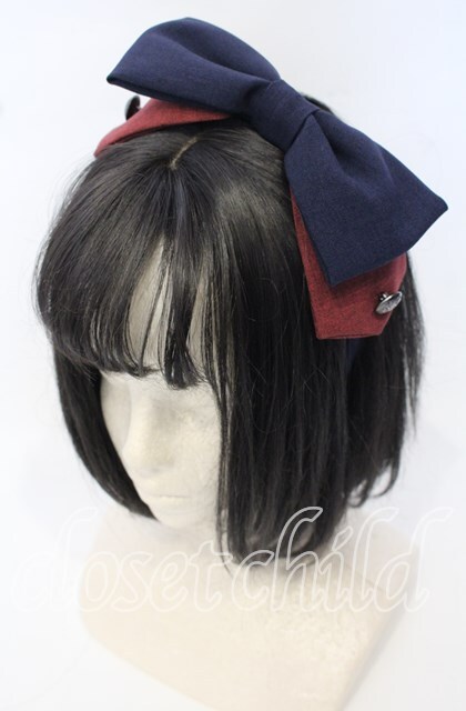 metamorphose / With a magic wand!リボンカチューシャ ネイビー×ワイン O-25-10-10-019-ME-AC-IG-OS