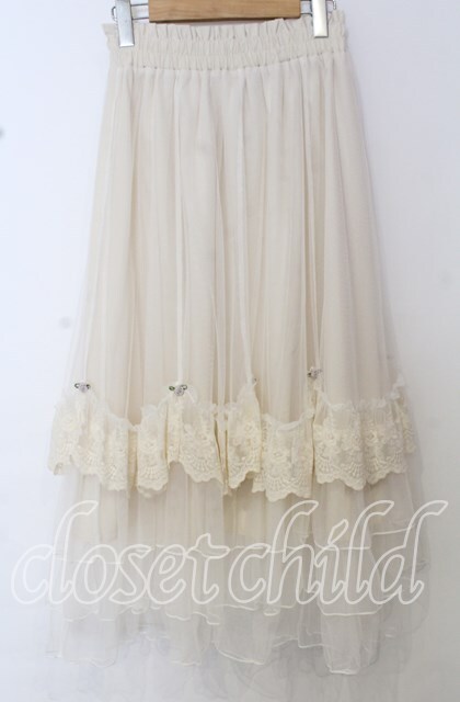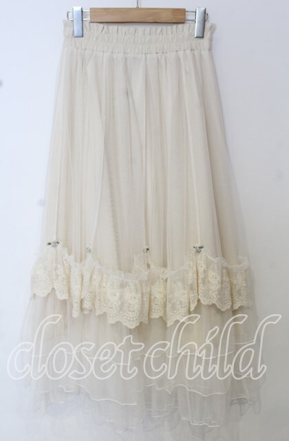 axes femme / ローズ付ドレープチュールスカート アイボリー O-25-10-10-064-AX-SK-IG-OS