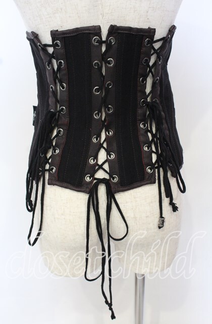 Ozz Croce / レースアップ刺繍入りコルセット ブラック×ブラウン O-25-10-10-048-OO-TO-IG-OS [2100080000060526-O-25-10-10-048-OO-TO-IG-OS]