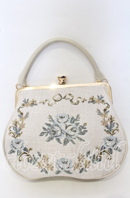 an another angelus / リボンローズ刺繍がま口バッグ ナチュラル×ブルー刺繍 O-25-10-10-027-CA-BG-IG-OS