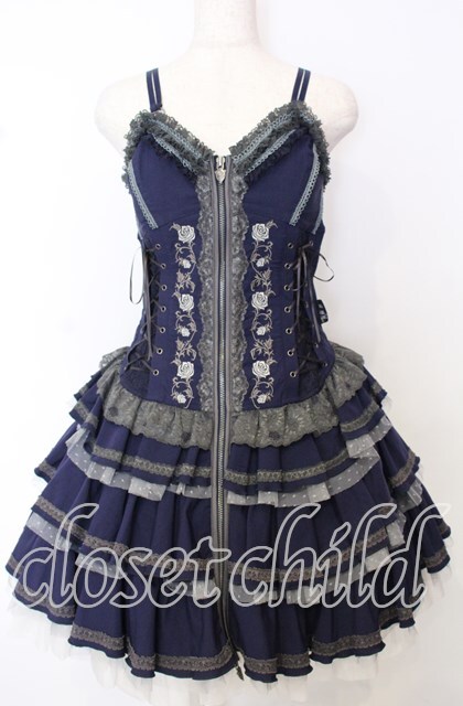 OZZ ANGELO / 薔薇刺繍ZIPビスチェワンピース ネイビー O-25-10-10-059-OO-OP-IG-OS [2100080000060519-O-25-10-10-059-OO-OP-IG-OS]
