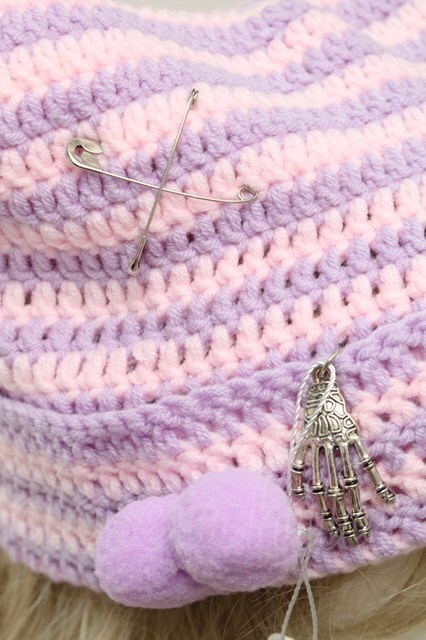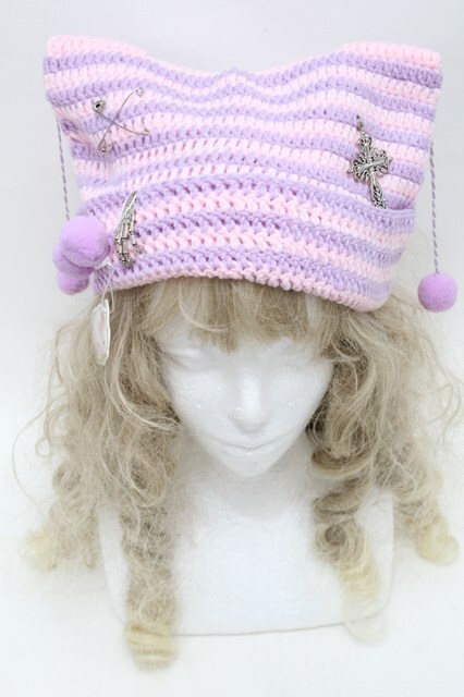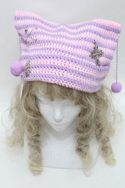 中国ロリータ / バイカラーニットハット ピンクxラベンダー S-25-10-10-009-LO-OP-HR-ZS