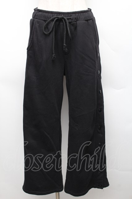 KRY CLOTHING / 刺繍サイドボタンスウェットパンツ 黒 S-25-12-16-048-EL-PA-HR-ZS [2100020000032567-S-25-12-16-048-EL-PA-HR-ZS]
