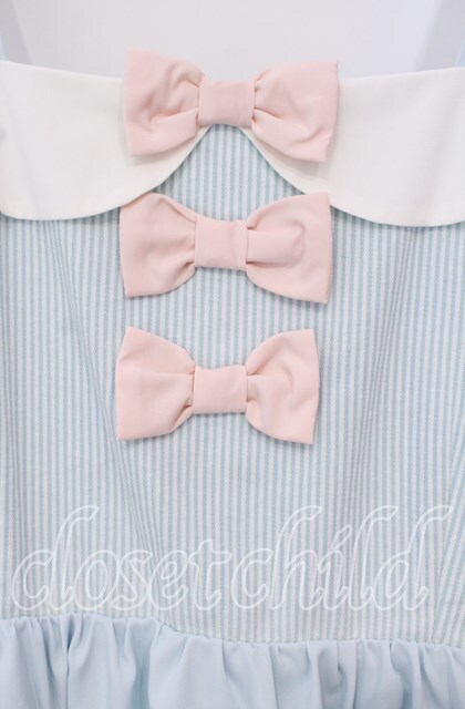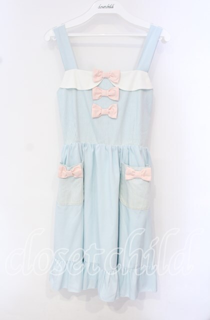 DearMyLove / ストライプカントリー配色♪エプロン風ジャンパースカートワンピース M サックス O-25-10-11-098-EL-OP-OW-OS