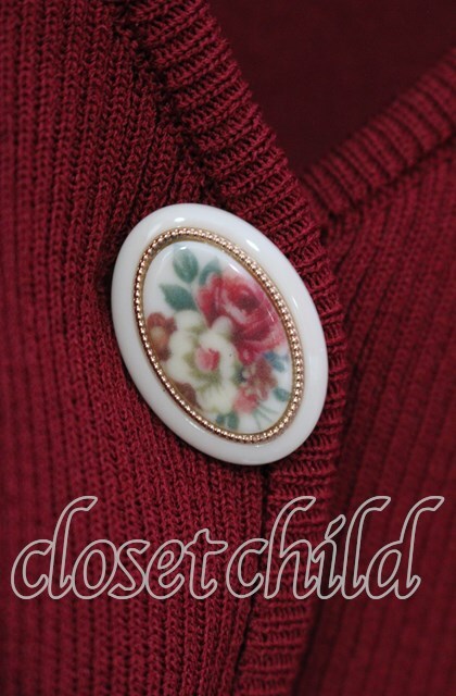 an another angelus / フラワーカメオ釦ショートニットカーディガン アカ O-25-10-11-055-CA-TO-IG-OS
