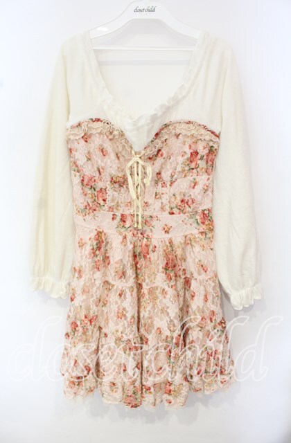 LIZ LISA / 起毛レースニットワンピース オフ×ピンク O-25-10-11-083-LO-OP-IG-OS