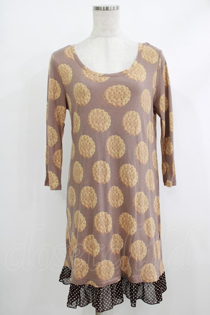 Emily Temple cute / ビスケット水玉フリル付カットソーワンピース チャ H-25-10-16-1026-ET-OP-KB-ZH [2100030000074520-H-25-10-16-1026-ET-OP-KB-ZH]