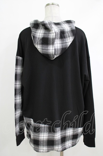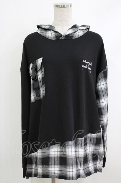 NieR Clothing / チェック切替プルパーカー 黒 H-25-10-16-1048-PU-TO-KB-ZH