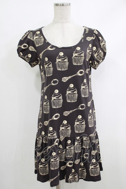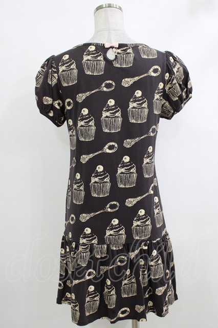 Emily Temple cute / カップケーキ&スプーンプリントカットソーワンピース チャコールグレー H-25-10-16-1024-ET-OP-KB-ZH