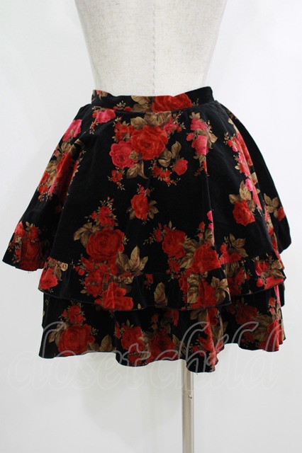 BPN / 薔薇プリント別珍スカート M 黒 H-25-10-16-1022-GO-SK-KB-ZH [2100030000074683-H-25-10-16-1022-GO-SK-KB-ZH]