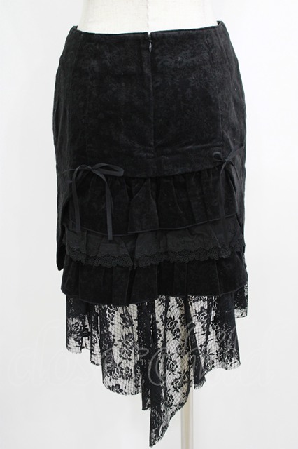 PEACE NOW / バックフリルプリントフロッキースカート M 黒 H-25-10-16-1032-PU-SK-KB-ZH [2100030000074682-H-25-10-16-1032-PU-SK-KB-ZH]