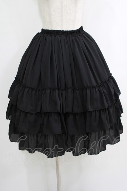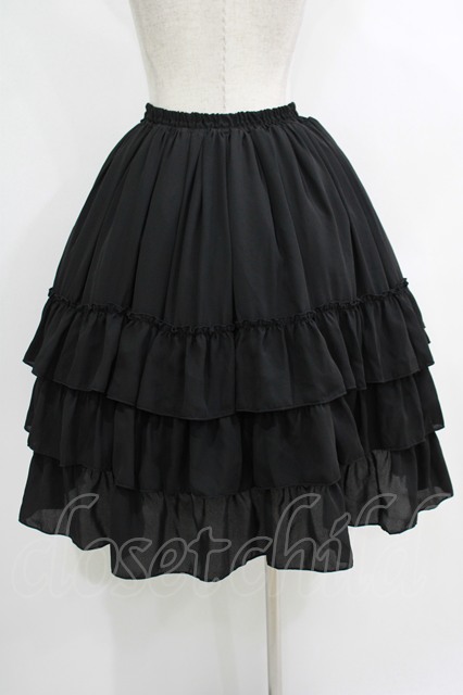ATELIER PIERROT / Three-Tiered Ruffle Chiffon Skirt ブラック H-25-10-16-1008-EL-SK-KB-ZH