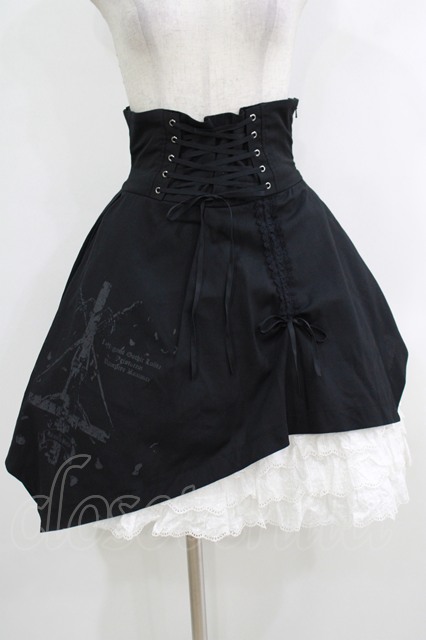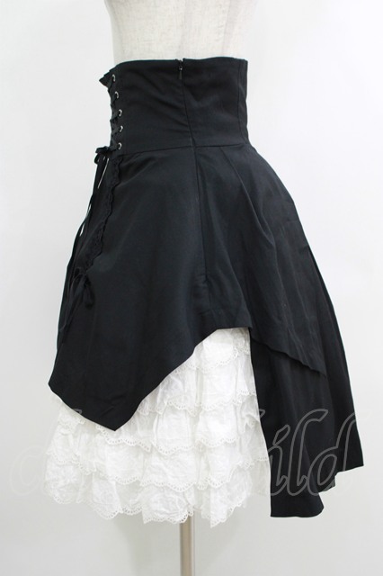 Moi-meme-Moitie / フォールクロスプリントスカート 黒 H-25-10-16-1015-MO-SK-KB-ZH [2100030000072312-H-25-10-16-1015-MO-SK-KB-ZH]