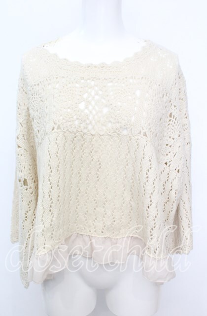 axes femme / シフォンフリル鍵編みニット アイボリー O-25-10-11-1043-AX-TO-IG-OS