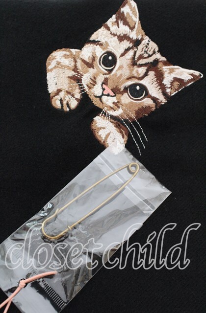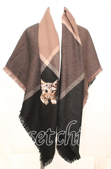 axes femme / 猫刺繍ピン付き大判ストール ブラウン×クロ O-25-10-11-1062-AX-ZA-IG-OS