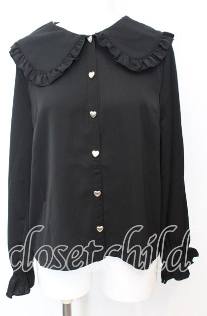 axes femme POETIQUE / ハート釦丸襟ブラウス クロ O-25-10-11-1037-AX-BL-IG-OS
