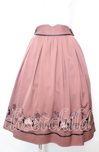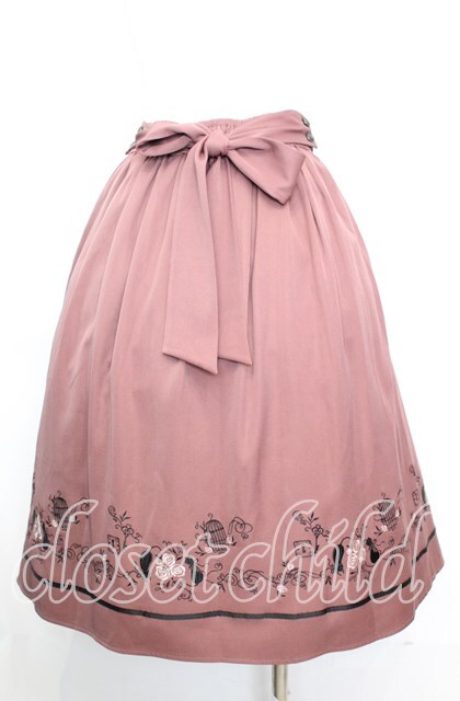 axes femme / リボン付猫刺繍スカート ピンクベージュ O-25-10-11-1025-AX-SK-IG-OS