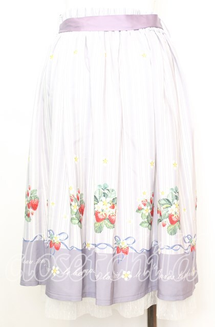 axes femme POETIQUE / ストロベリーストライプスカート シロ×ラベンダー O-25-10-11-1019-AX-SK-IG-OS