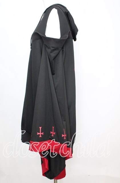 NieR Clothing / 着物風袖 FRONT ZIP付きOFF-SHOULDER PARKA【CROSS】 パーカー ブラック×レッド O-25-10-11-1054-PU-TO-IG-OS [2100080000061050-O-25-10-11-1054-PU-TO-IG-OS]