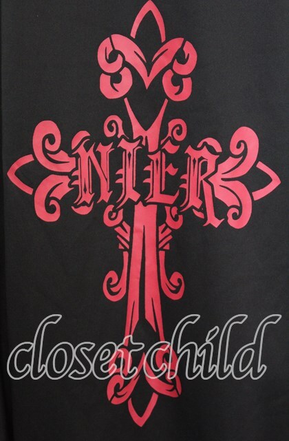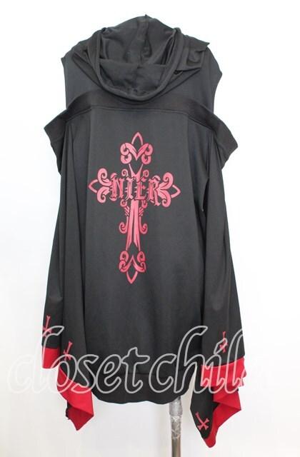 NieR Clothing / 着物風袖 FRONT ZIP付きOFF-SHOULDER PARKA【CROSS】 パーカー ブラック×レッド O-25-10-11-1054-PU-TO-IG-OS
