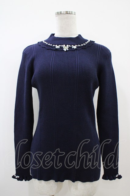 axes femme / ビジューボトルネックリブプルオーバー M ネイビー H-25-10-18-1059-AX-TO-NS-ZH