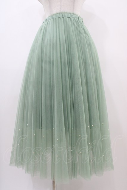 axes femme POETIQUE / パールデザインチュールスカート Free グリーン H-25-10-18-1041-AX-BL-NS-ZH