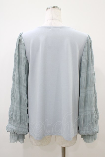 axes femme / ギャザー袖切替トップス M ブルー H-25-10-18-1054-AX-TO-NS-ZH [2100030000075216-H-25-10-18-1054-AX-TO-NS-ZH]