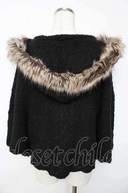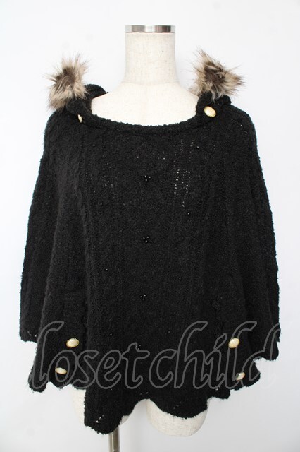 axes femme / フード付きニットポンチョ 黒 Y-25-10-13-049-AX-TO-SZ-ZY