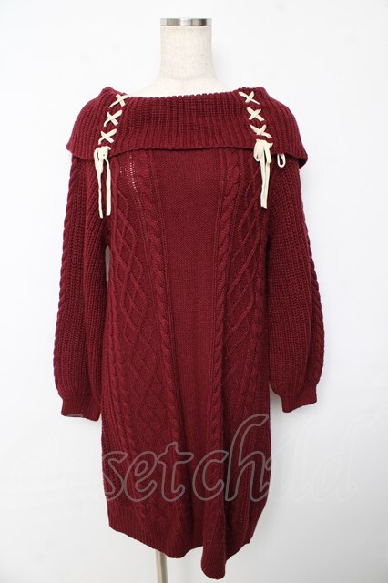 axes femme / W編み上げニットチュニック F ワイン Y-25-10-13-102-AX-OP-SZ-ZY