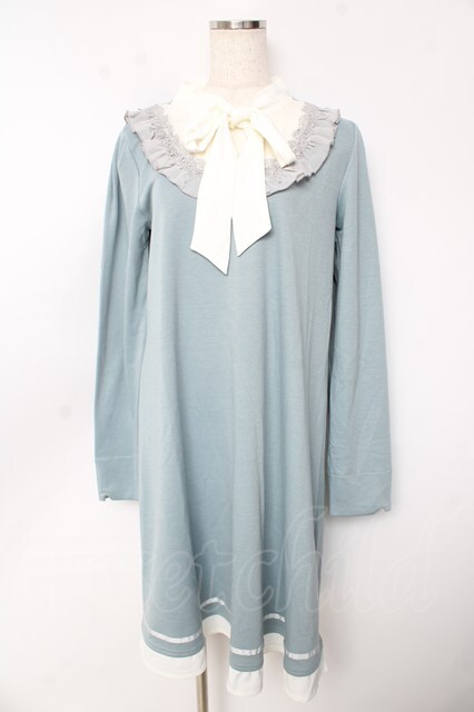 axes femme / ボウタイAラインカットワンピース サックス Y-25-10-13-104-AX-OP-SZ-ZY