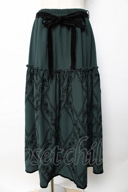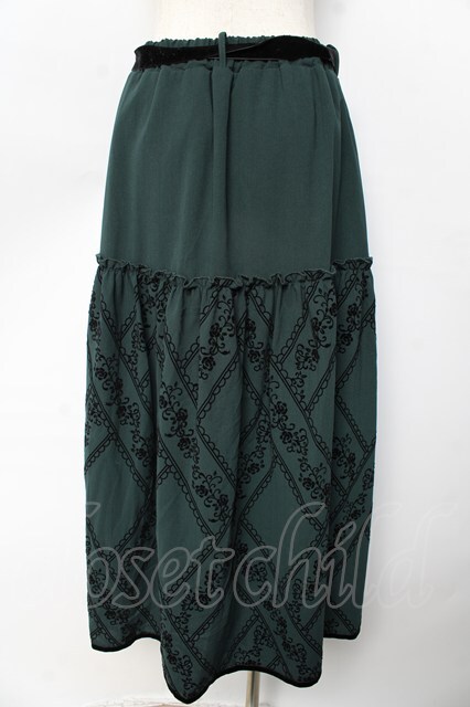 axes femme / フロッキープリントロングスカート M グリーン Y-25-10-13-138-AX-SK-SZ-ZY