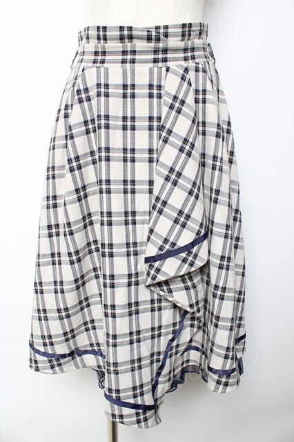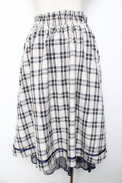 axes femme POETIQUE / チェックフリルスカート キナリ×紺 Y-25-10-13-140-AX-SK-SZ-ZY