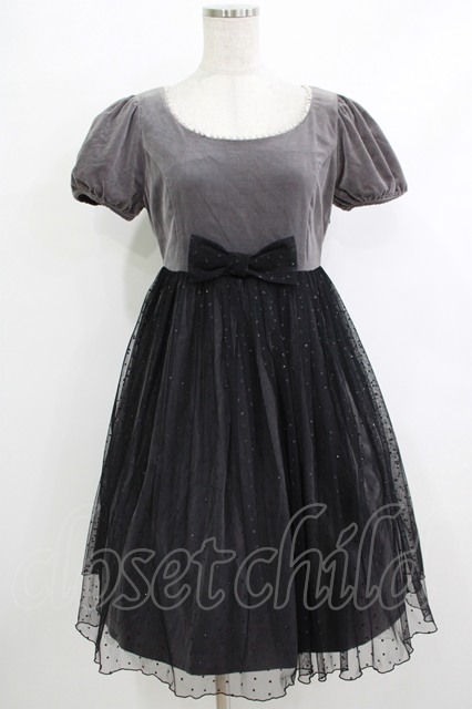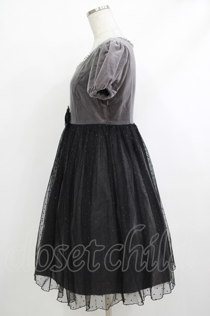Emily Temple cute / ドットチュール別珍ワンピース グレー H-25-10-17-1033-ET-OP-KB-ZH