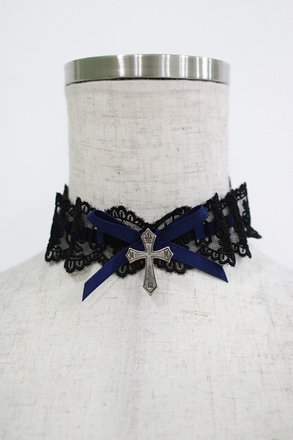 Moi-meme-Moitie / クロスロゴチャームレースチョーカー ブラック×ブルー×ゴールド H-25-10-17-1069-MO-AC-KB-ZH