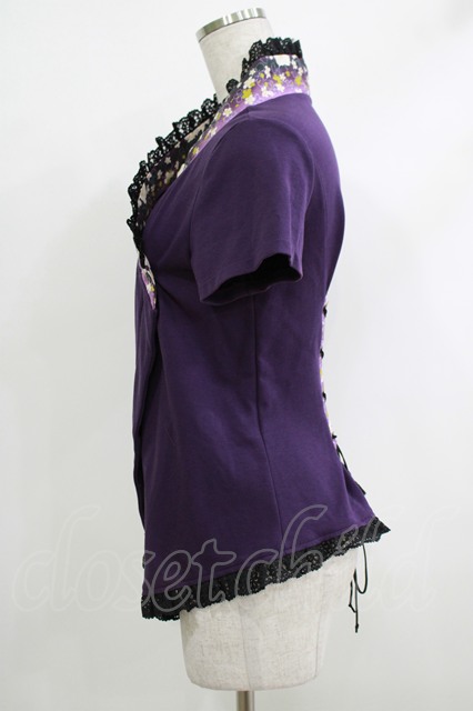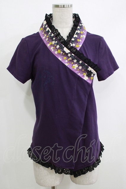 gouk / 着物衿半袖カーディガン 紫 H-25-10-17-1064-GO-TO-KB-ZH
