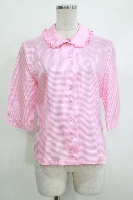 Jane Marple / ループカラーギンガムブラウス ピンク H-25-10-17-1057-JM-BL-KB-ZH