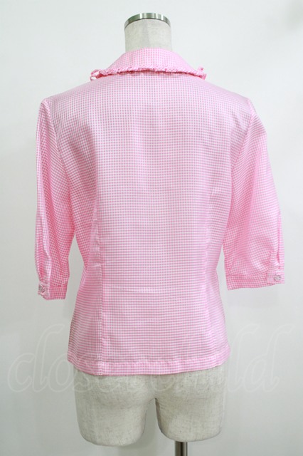 Jane Marple / ループカラーギンガムブラウス ピンク H-25-10-17-1057-JM-BL-KB-ZH [2100030000075247-H-25-10-17-1057-JM-BL-KB-ZH]