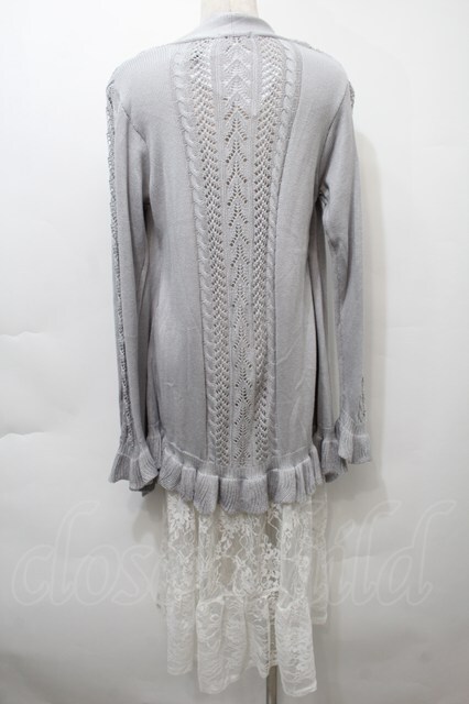 axes femme / レイヤード風デザインカーディガン グレーx白 S-25-10-12-022-AX-TO-HR-ZS