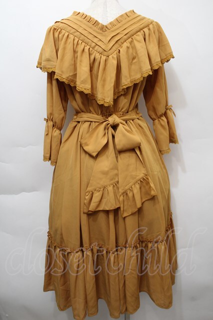 axes femme kawaii / シャルロットワンピース からし S-25-10-12-036-AX-OP-HR-ZS