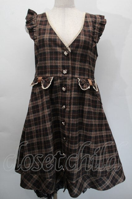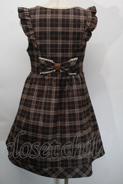 axes femme / チェック柄リボンジャンドレ ブラウン S-25-10-12-046-AX-OP-HR-ZS [2100020000032612-S-25-10-12-046-AX-OP-HR-ZS]