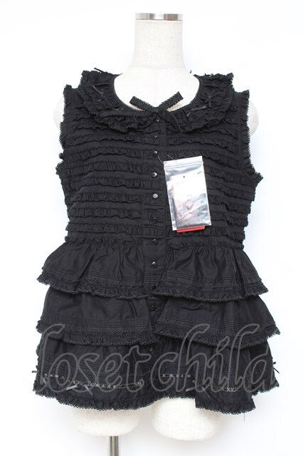 PINK HOUSE / フリル使いノースリーブブラウス F 黒 Y-25-12-20-011-LO-BL-SZ-ZY [2100070000049222-Y-25-12-20-011-LO-BL-SZ-ZY]
