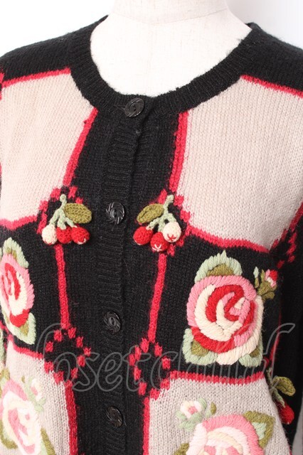 PINK HOUSE / ローズモチーフパッチワーク風カーディガン F 黒 Y-25-12-20-052-LO-TO-SZ-ZY [2100070000049224-Y-25-12-20-052-LO-TO-SZ-ZY]