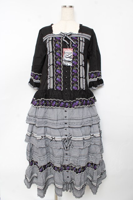 PINK HOUSE / バイオレットレース使いワンピース F 黒 Y-25-10-15-028-LO-OP-SZ-ZY
