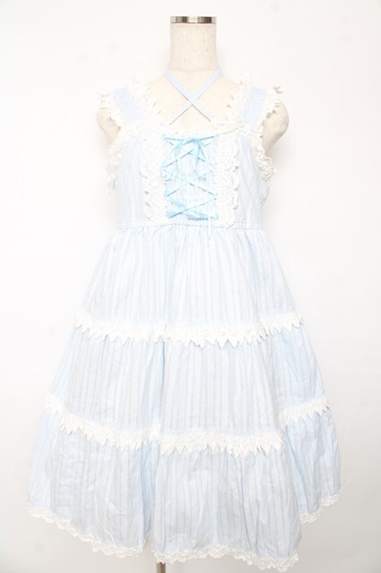 BABY,THE STARS SHINE BRIGHT / からみ3段ティアードジャンパースカートセット サックス Y-25-10-15-056-BA-OP-AS-ZY