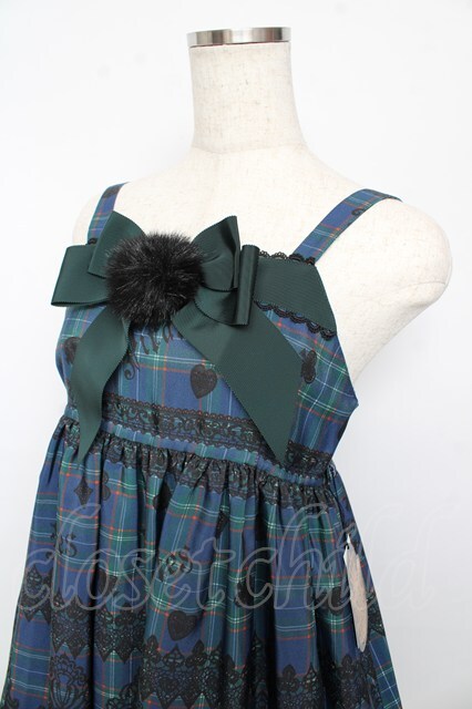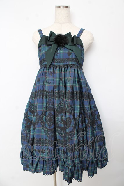 ALICE and the PIRATES / アリスのトランプタータン柄ジャンパースカートII グリーンx紺 Y-25-10-15-063-PA-OP-AS-ZY