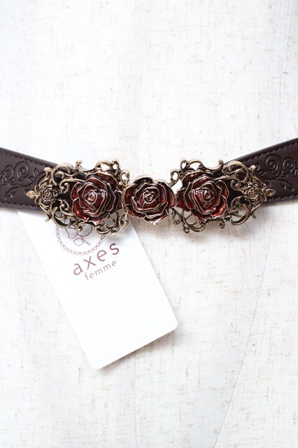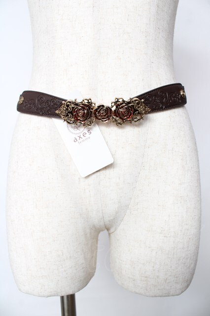 axes femme / バラxエンボスゴムベルト Dブラウン Y-25-10-16-026-AX-BL-SZ-ZY