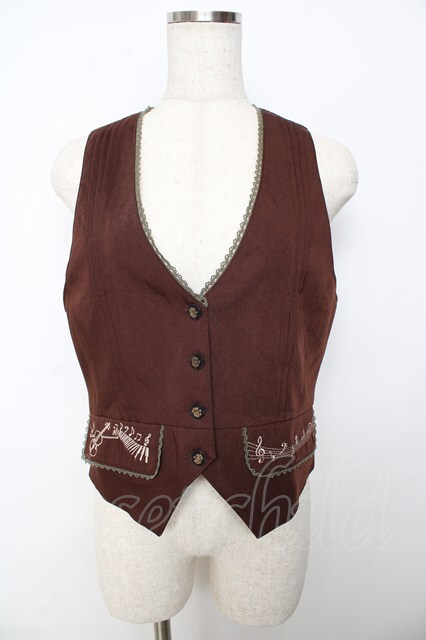 axes femme / 音楽柄刺繍ベスト M 茶 Y-25-10-16-070-AX-JA-SZ-ZY [2100070000051801-Y-25-10-16-070-AX-JA-SZ-ZY]