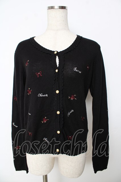 axes femme / 刺繍カーディガン M 黒 Y-25-10-16-072-AX-TO-SZ-ZY