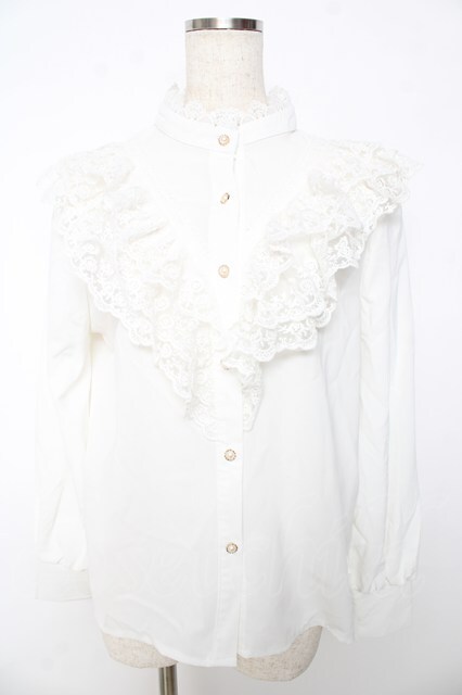 axes femme / リボンタイ付レースフリルブラウス M 白 Y-25-10-16-084-AX-BL-SZ-ZY